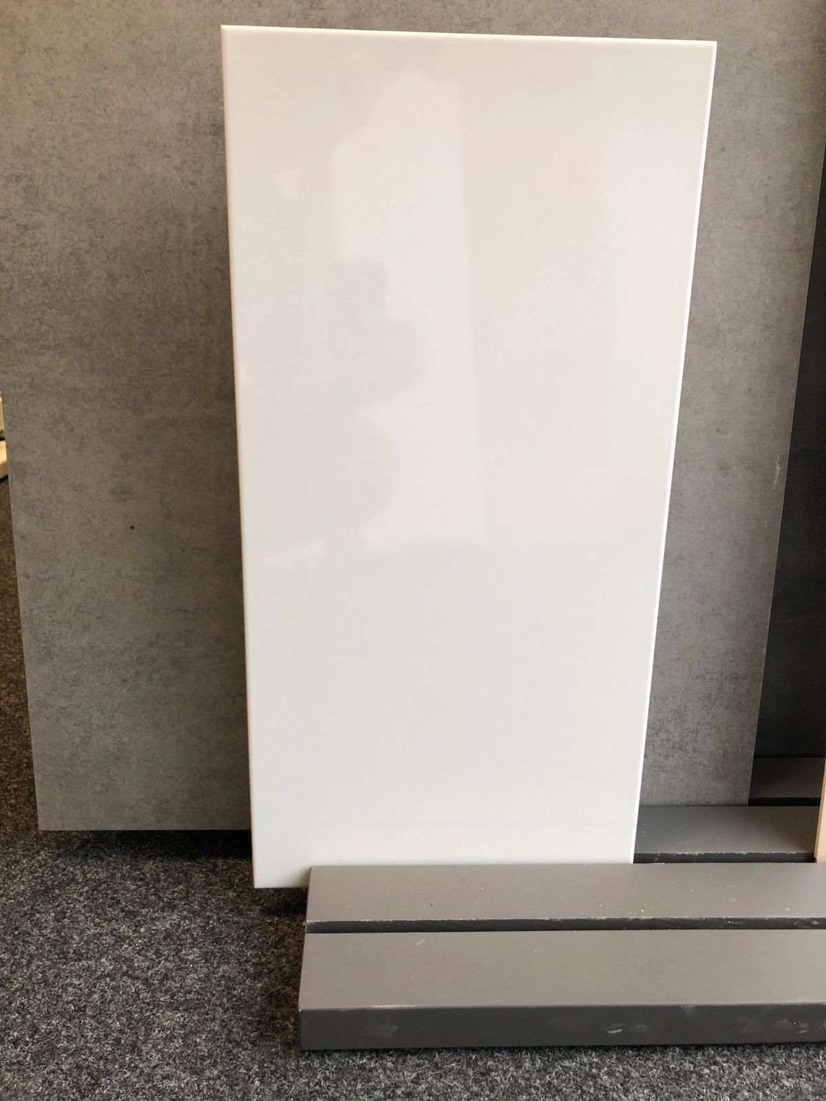 Wandfliese weiß glänzend 30x60x0,75 cm. Preßkante 1 Sorte. Charger VI5